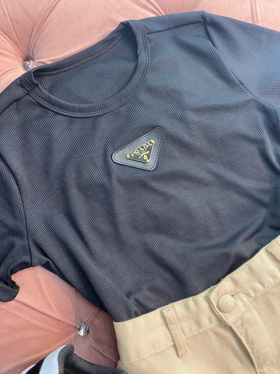 👕 Modelo manga curta canelado com detalhe central emblema, trazendo um toque fashion e sofisticado.