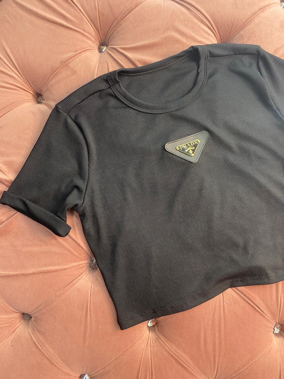 Blusa Cropped Preta Canelada – Manga Curta – Tamanho M