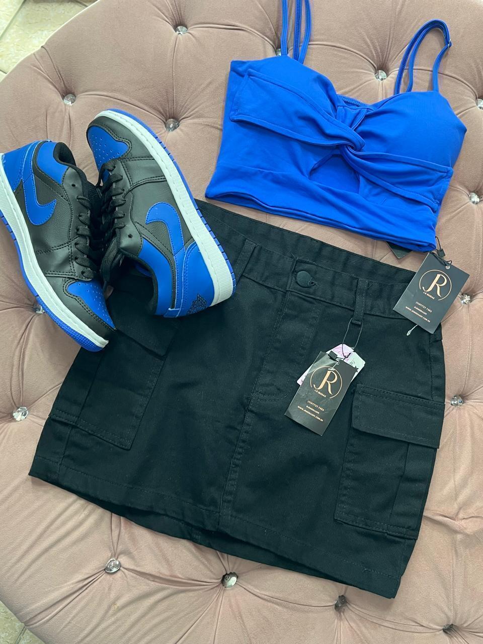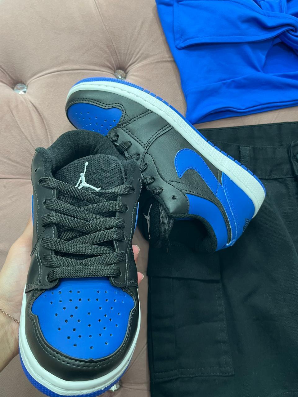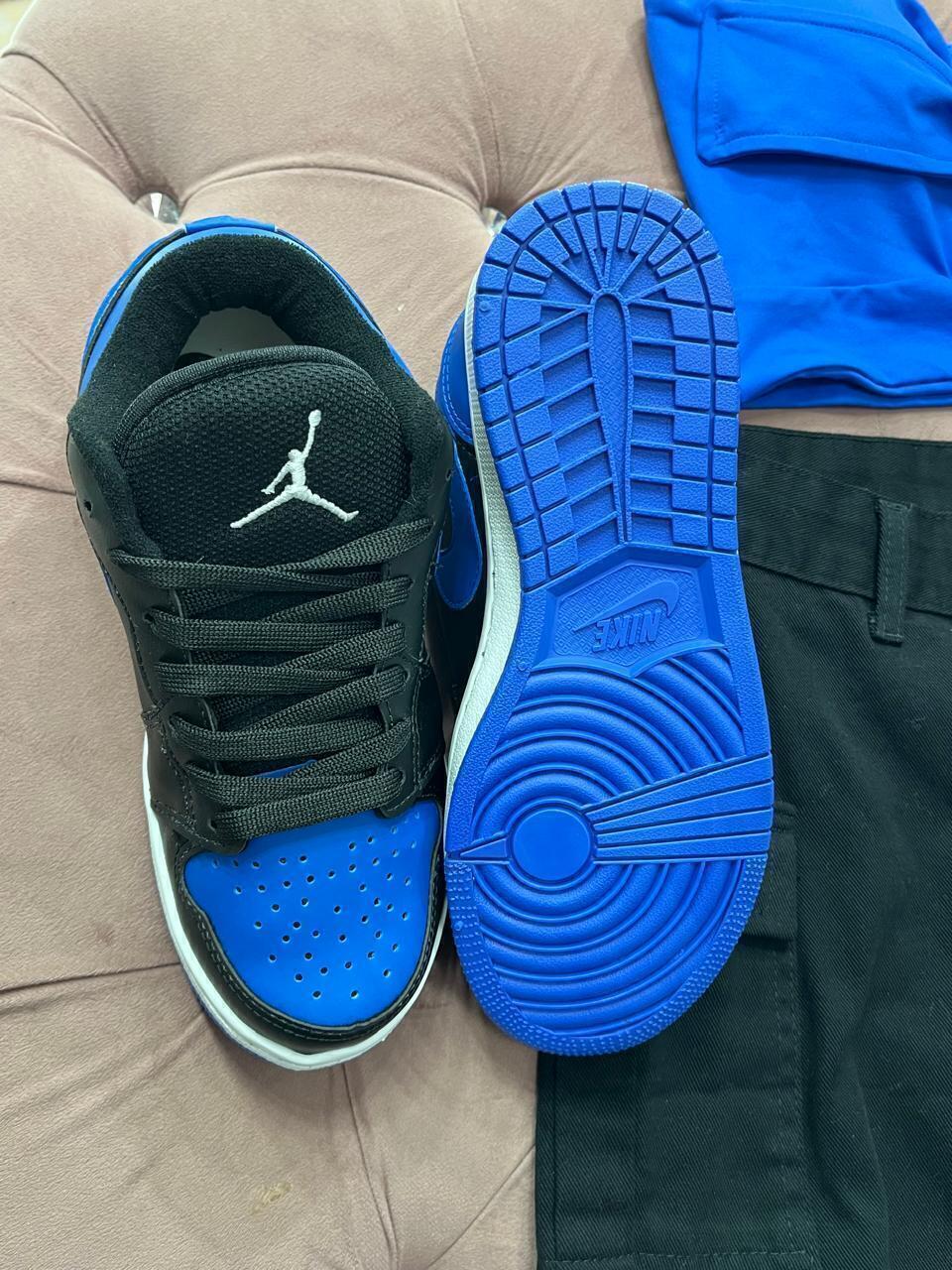 Tênis preto com Azul bic com detalhes em baixo cor azul