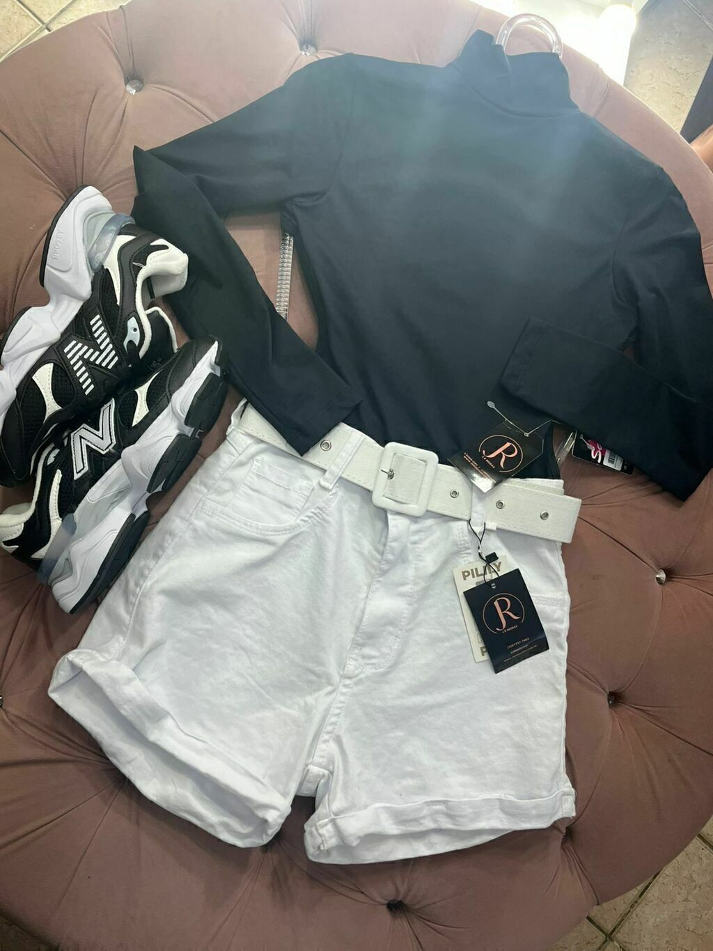 Short jeans Branco com cinto e lycra Melinda Short jeans Branco com cinto e lycra Melinda