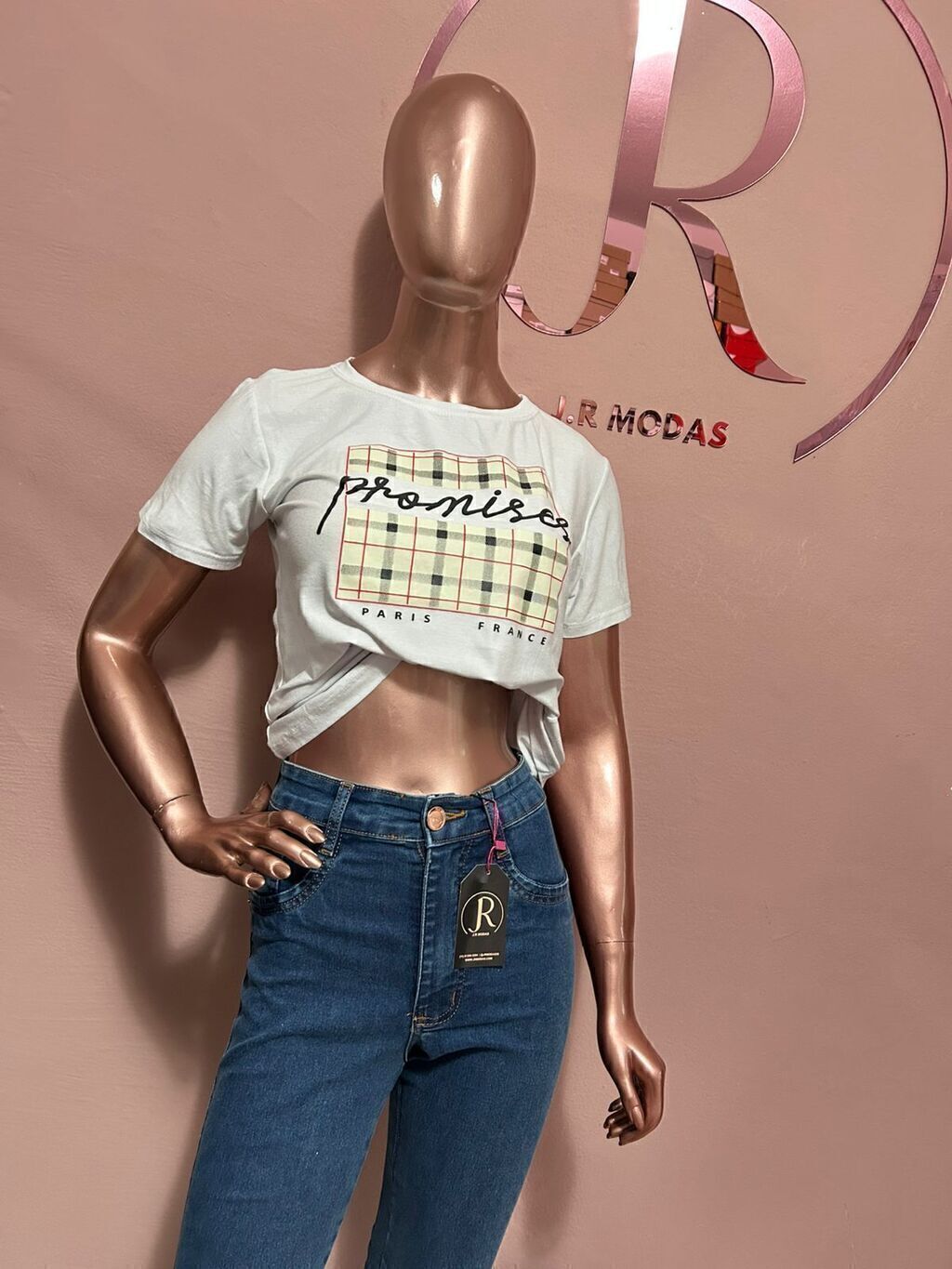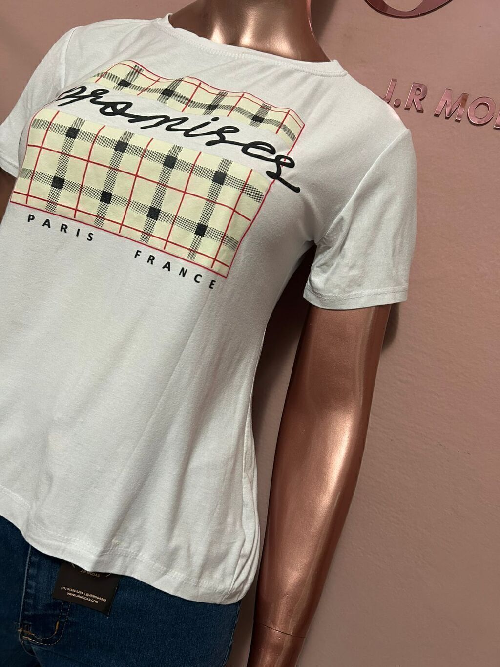 Tshirts manga curta com escrita e detalhes na frente
