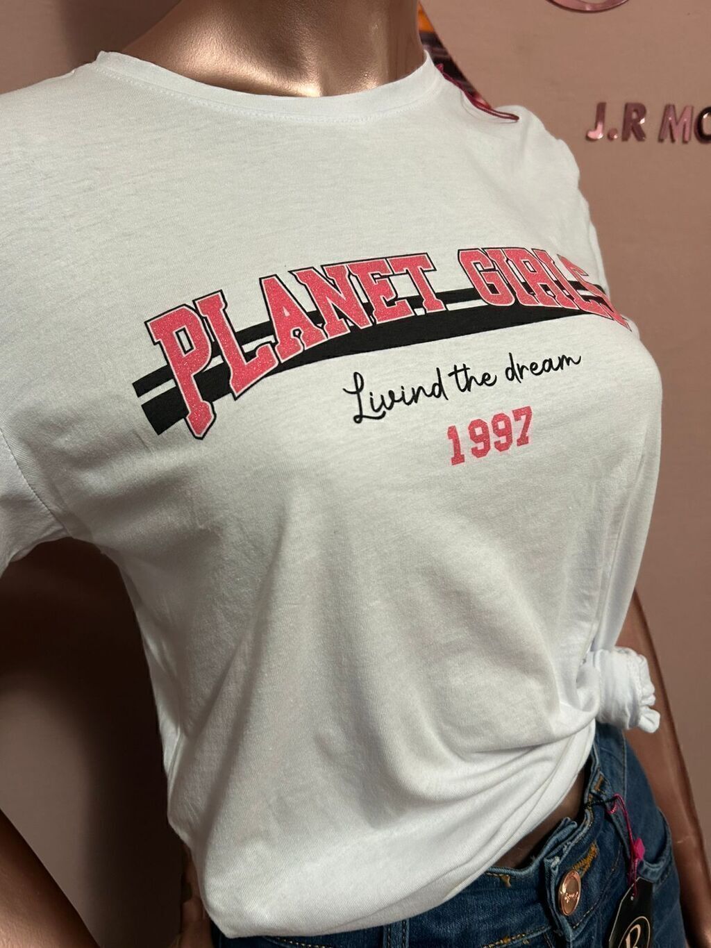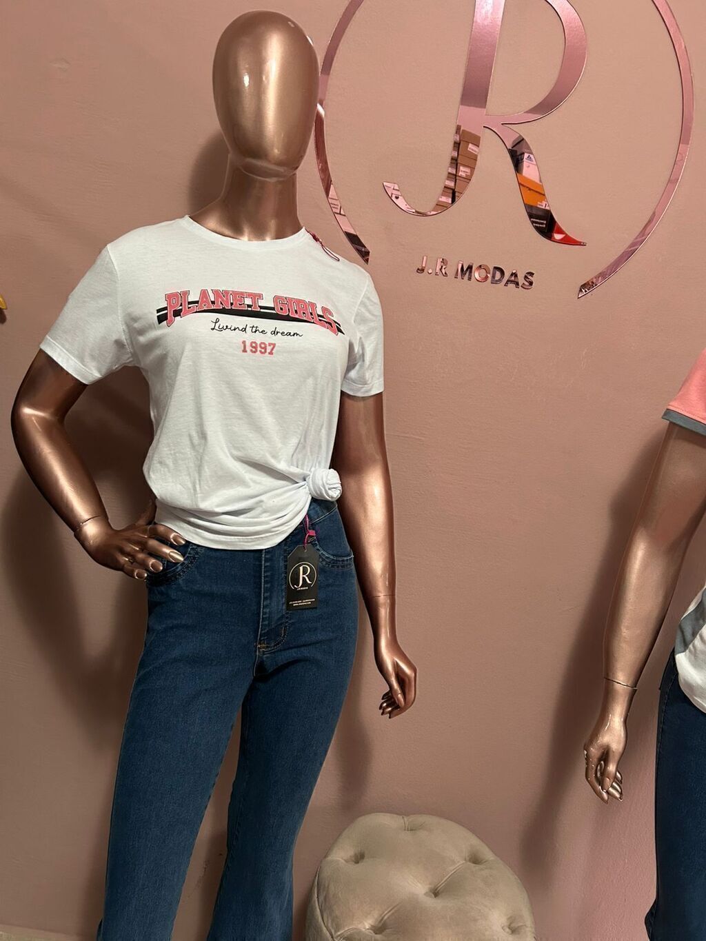 Tshirts manga curta com escrita na frente e Gliter na escrita